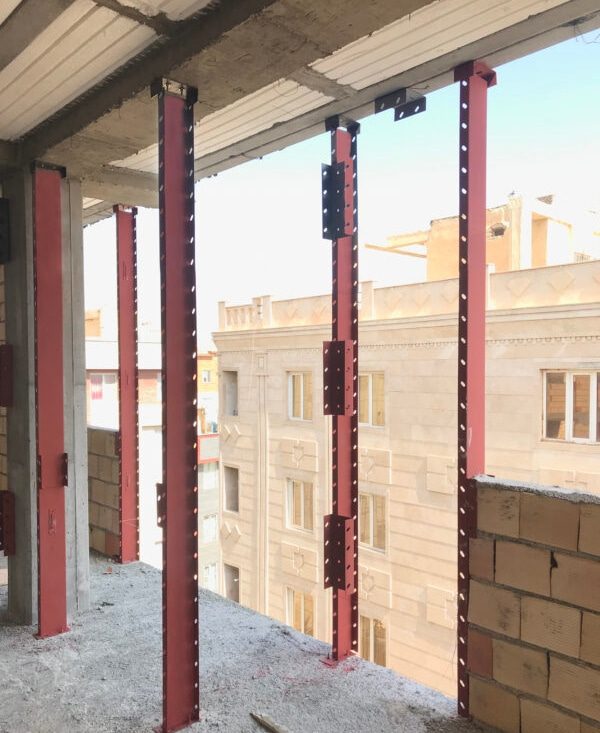 وادار میانی با نبشی و ناودانی: برای تقویت ساختار دیوارها و افزایش مقاومت در برابر نیروهای جانبی.